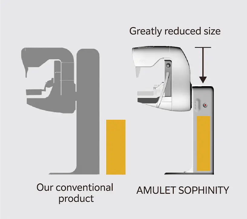 Smarter and more comfortable. Pursuing a design concept that is close to the senses of patients, doctors and technologists. This leads to a smooth and relaxed test experience and provides high-quality test results and diagnostic images more reliably. This is the birth of AMULET SOPHINITY, which has refined “gentleness” to meet the needs of all women.